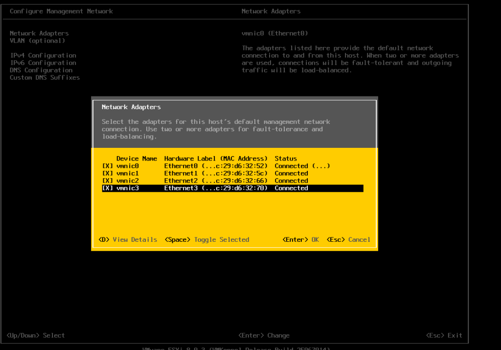 - 在ESXI里面把网卡选上,这样在ESXI Web管理界面才能看到添加的物理网卡。