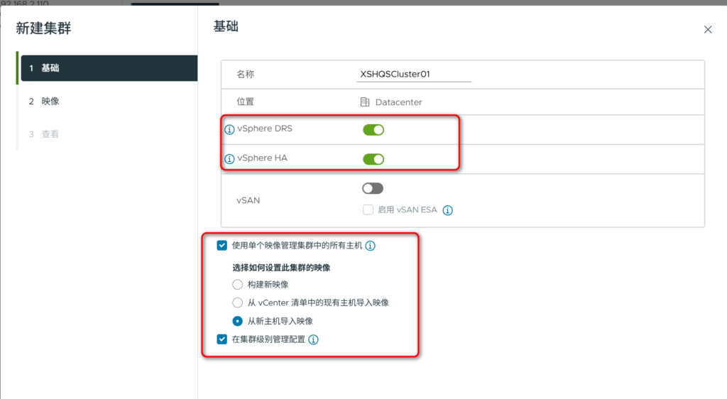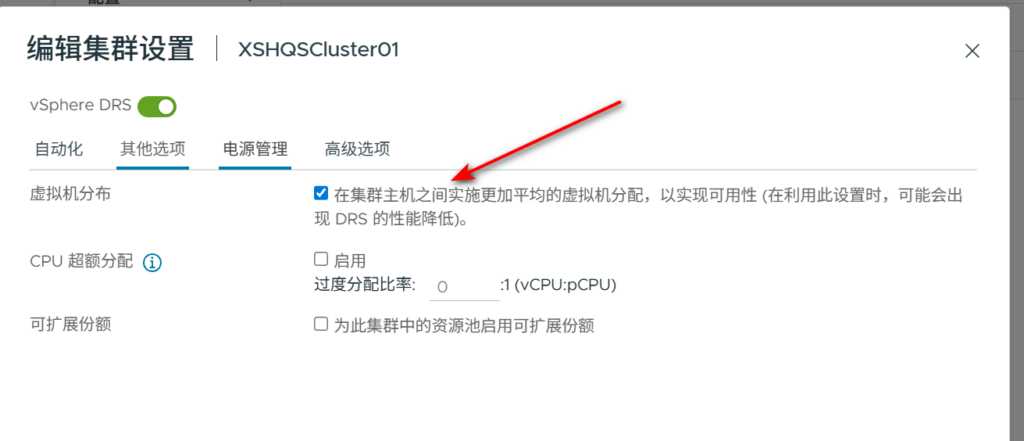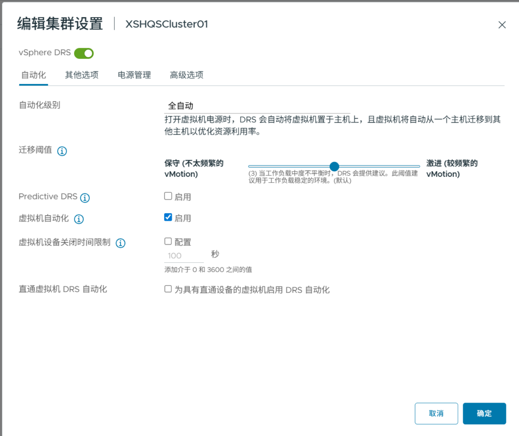- 集群已经建立成功,这是DRS的配置,可以根据生产环境需要自定义配置。
