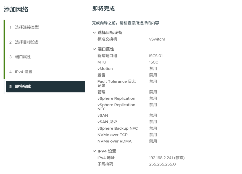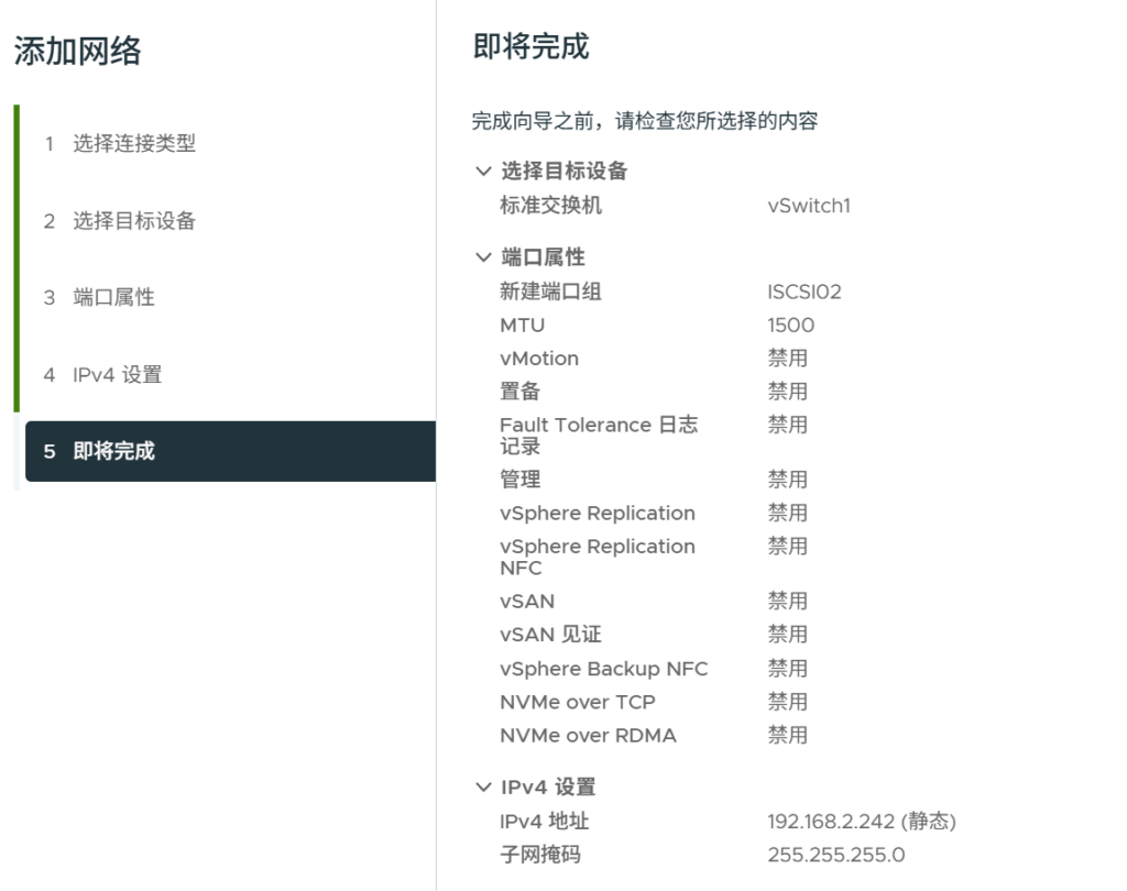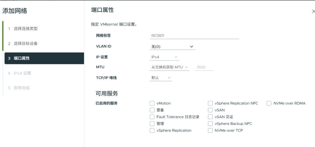 - 添加ISCSI的VMkernel时候,下面的服务不用选。