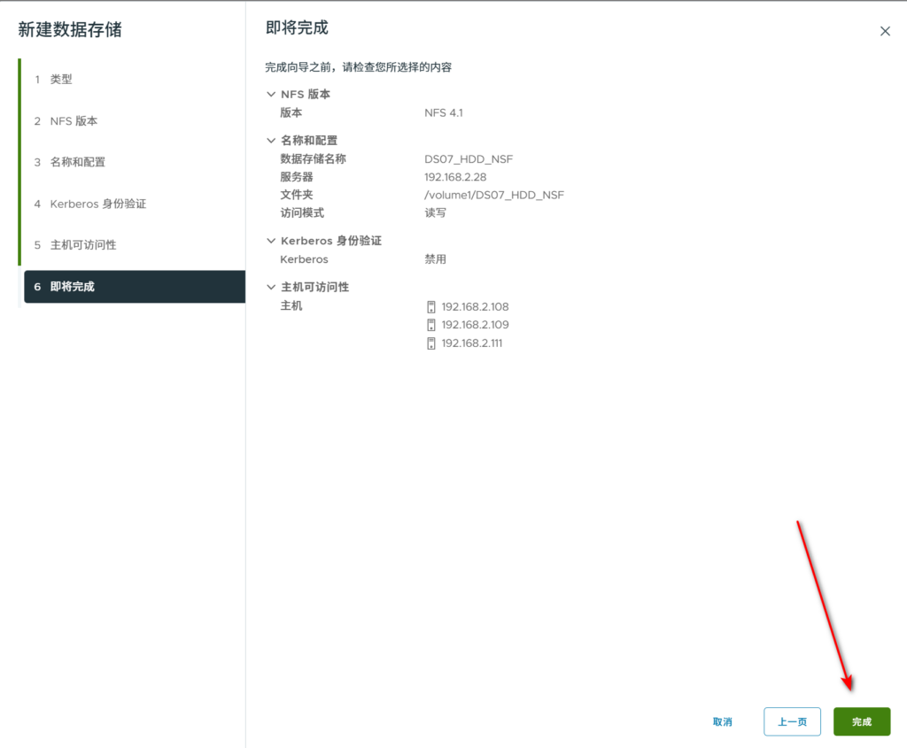 - 在Synology建立存储如下,NSF的权限需要添加所有需要访问的ESXI主机.