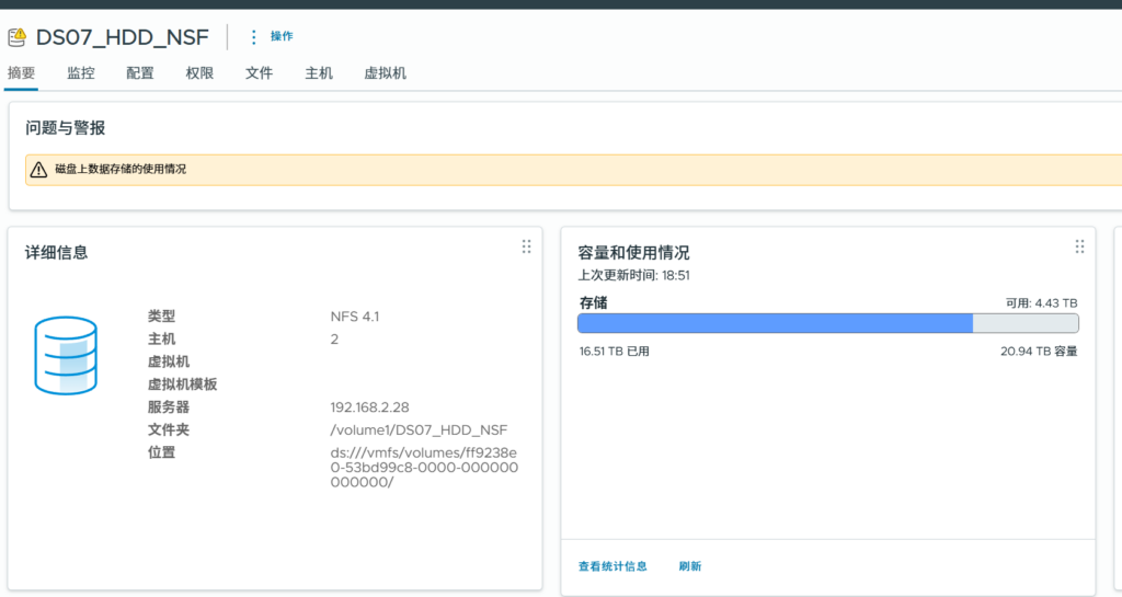 已经添加成功,只是硬盘使用空间有报警。