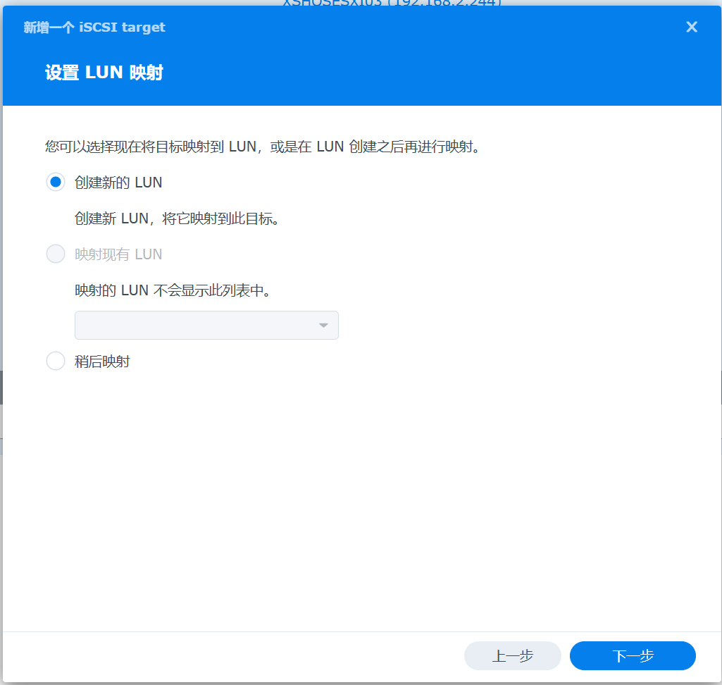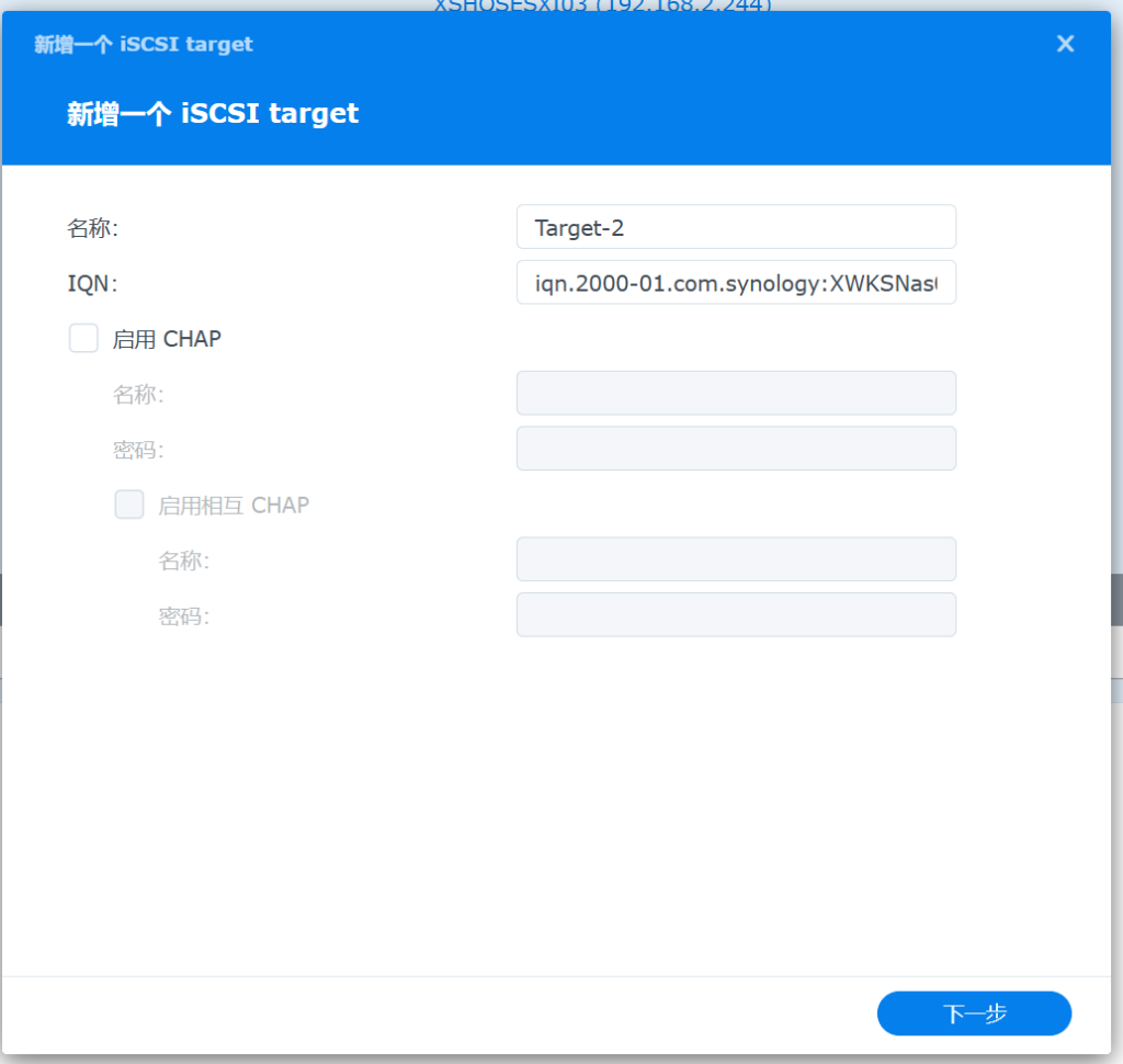 - 还是一样,需要在Synology上建立ISCSI Target.