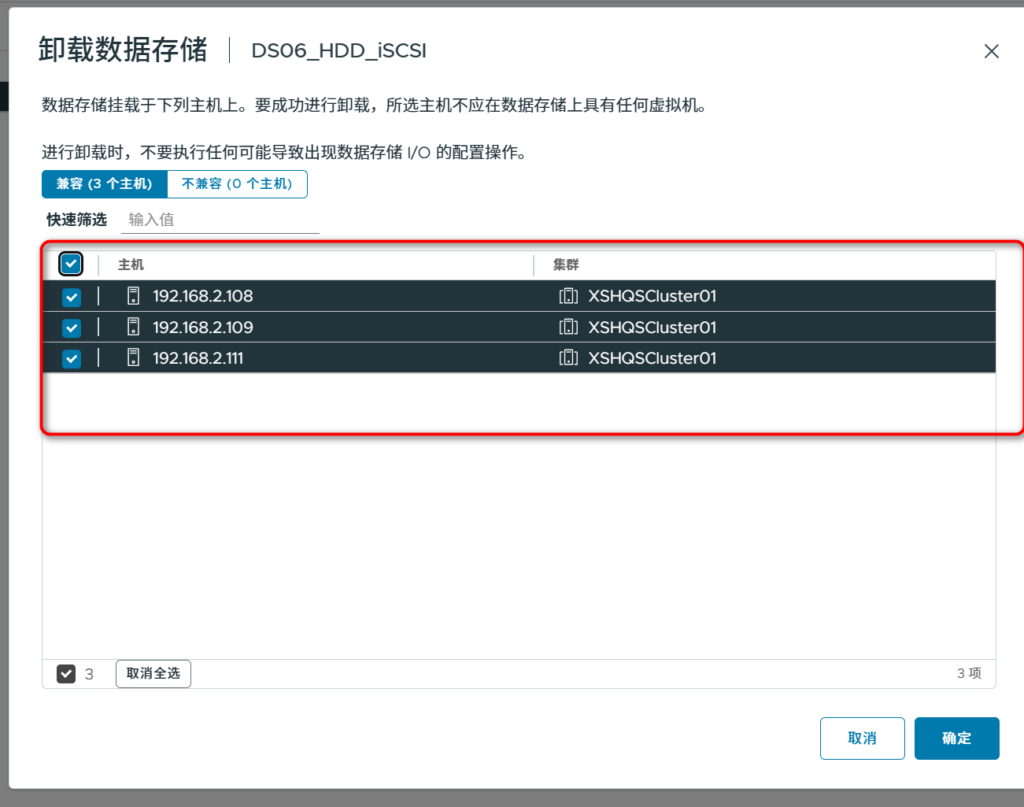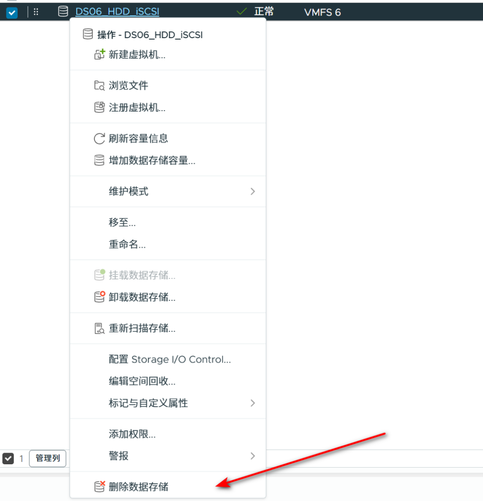 要删除ISCSI的存储是,要先选择卸载存储,再删除。